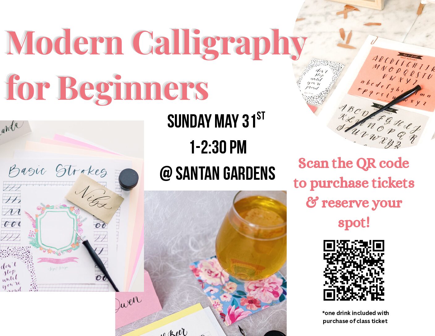 Join us at SanTan Gardens for a modern calligraphy workshop with Sip & Script! Class starts at 1pm and includes 1.5 hours of instruction and demonstration, our beginner’s calligraphy kit (two nibs, black ink pot, 2 letter guides, tracing paper, and straight pen holder), and all materials to write on. Everything is yours to keep at the […]